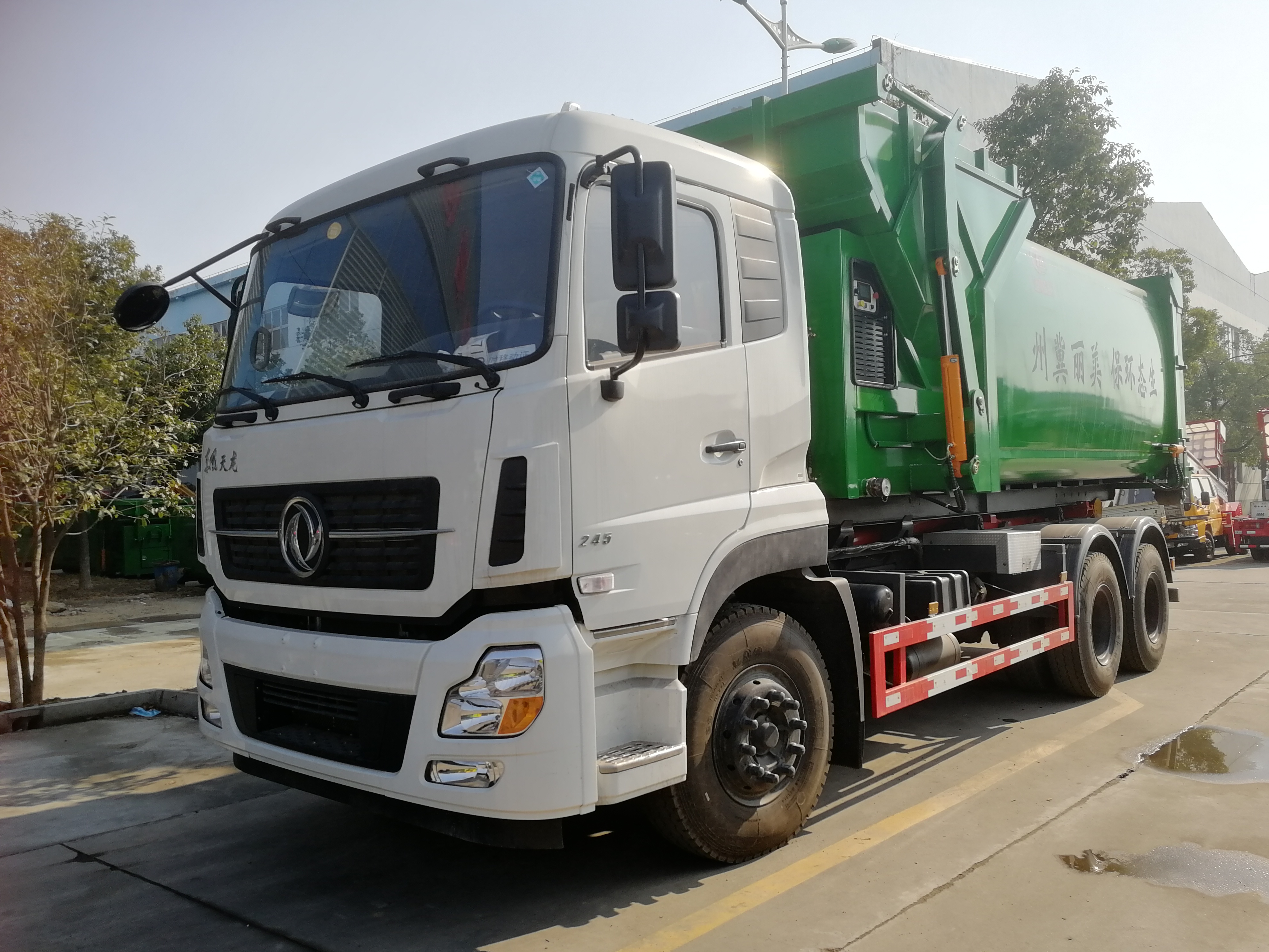 湖北程力熱銷東風天龍后雙橋勾臂垃圾車車廂可卸式垃圾車移動垃圾站產品推薦介紹:車廂可卸式垃圾車,合理的結構設計,及優良、靈活的簡便的性能操作。主要配套件全部采用國內外通用標準件,維修方便。適用于各種固態垃圾的收集。