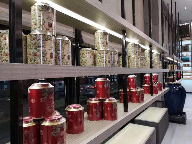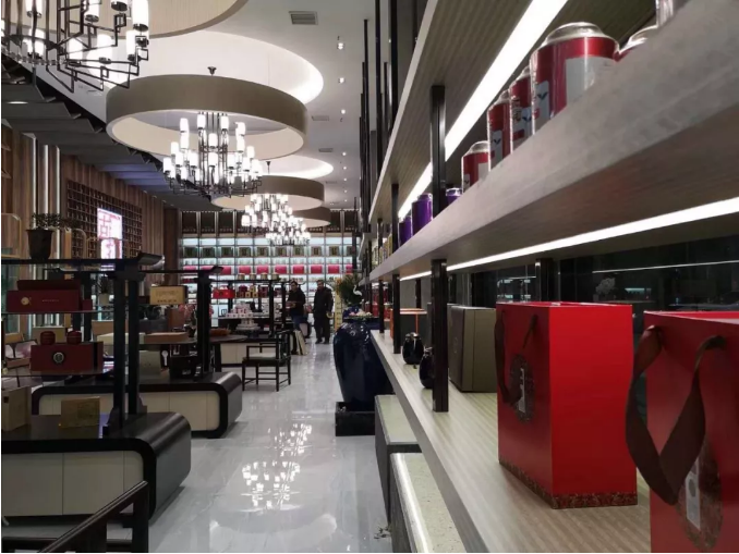 大堂內(nèi)各種高端和名貴的靚茶擺放有序,琳瑯滿目。