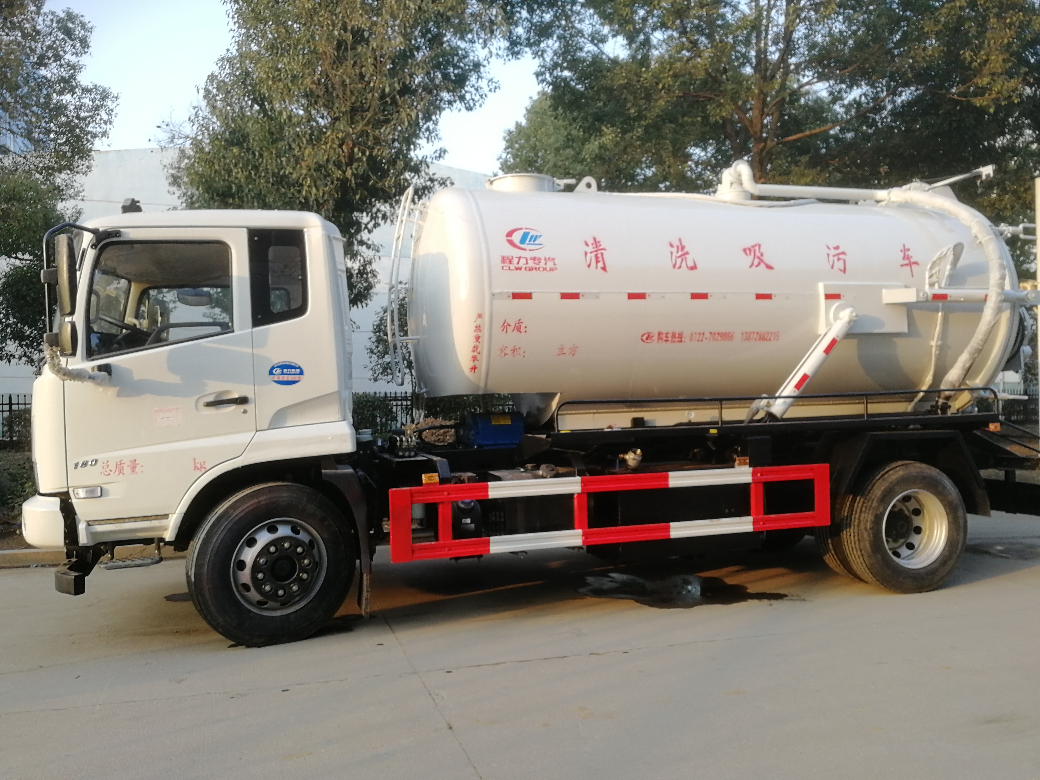 湖北程力國五東風天錦清洗吸污車(又名聯合疏通車,清水罐3.6方,吸污罐10方)。整車型號:CLW5165GQWD5,底盤型號:DFL1160BX1V,軸距4700mm,康明斯6缸180馬力,原廠空調,ABS,帶方向助力,275真空胎。帶廖素盒。