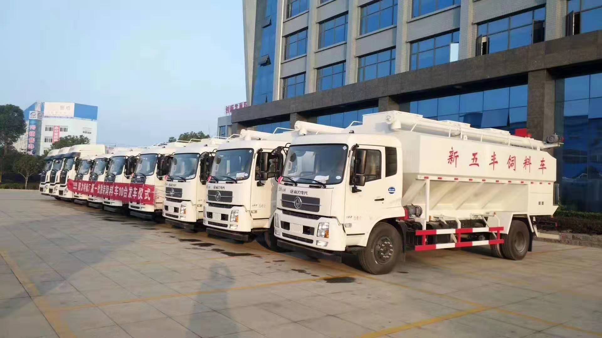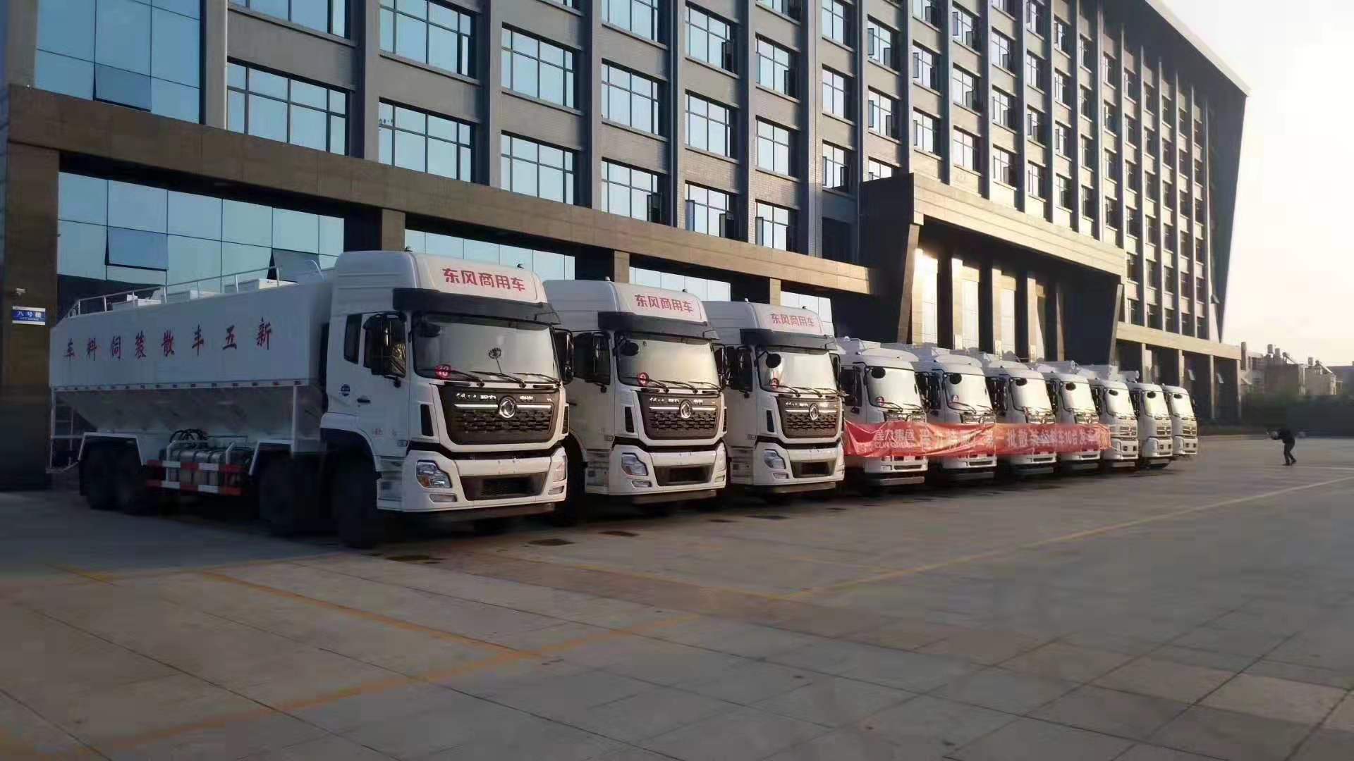 在此期間湖南新五豐股份有限公司訂購湖北程力散裝飼料車也批量發車,氣勢磅礴。下面是湖北程力散裝飼料車發車圖片: