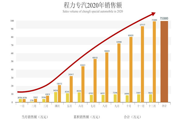 2020年三月份以來,湖北程力專汽及應急產品的生產銷售一直持續快速的攀升,平均增長速度超過了20%,遙遙領先于同行業的其他生產廠家,高于歷史同期增長水平,打了一個漂亮的翻身仗,截止12月25日上午10:38分,專汽產值提前6天順利完成75.58億,交出了一份令人滿意的答卷。