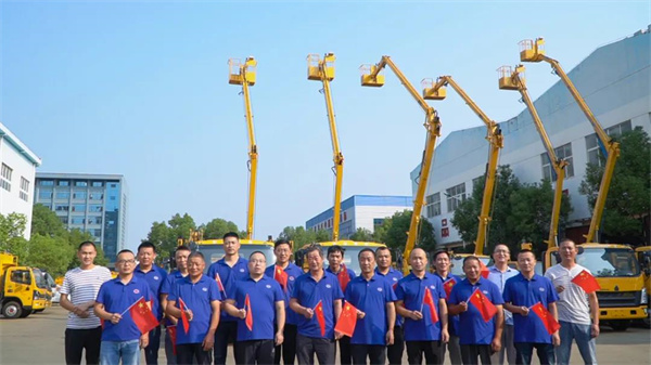 程力高空作業車廠干部員工,熱忱歡迎全國游客蒞臨隨州(南郊)汽車裝備工業園旅游觀光,購買高空作業車,行業翹楚就是我。