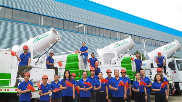 程力新廠高端抑塵車專業廠部分干部員工祝福祖國生日快樂,購買高端防疫消毒車,舍我其誰看程力;該廠無副發節能減排新型多功能高端抑塵車,擁有自己的核心專利技術,引領行業風向標。