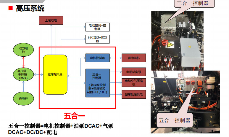 電控:電池輸出的電流經(jīng)過(guò)電控系統(tǒng),調(diào)控到底盤電機(jī)或上裝電機(jī)適用的電壓,對(duì)電動(dòng)汽車的爬坡、加速、減速、倒車等主要性能進(jìn)行調(diào)控。主要作用大概相當(dāng)于燃油車變速箱;但功能更加復(fù)雜。