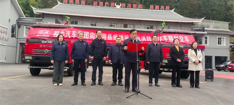 讓我們把時光的鏡頭聚焦在2024年11月23日,全國工商聯執委、程力汽車集團股份有限公司董事長程阿羅與集團黨委書記袁昌才等相關部門負責人,第二次到劍河縣捐贈消防灑水車;程董事長與劍河縣委書記楊勝朝、縣長陳林同志等職能部門領導,在劍河消防隊舉行了“踐行萬企興萬村,程力劍河一家親”第二批消防灑水車捐贈儀式。