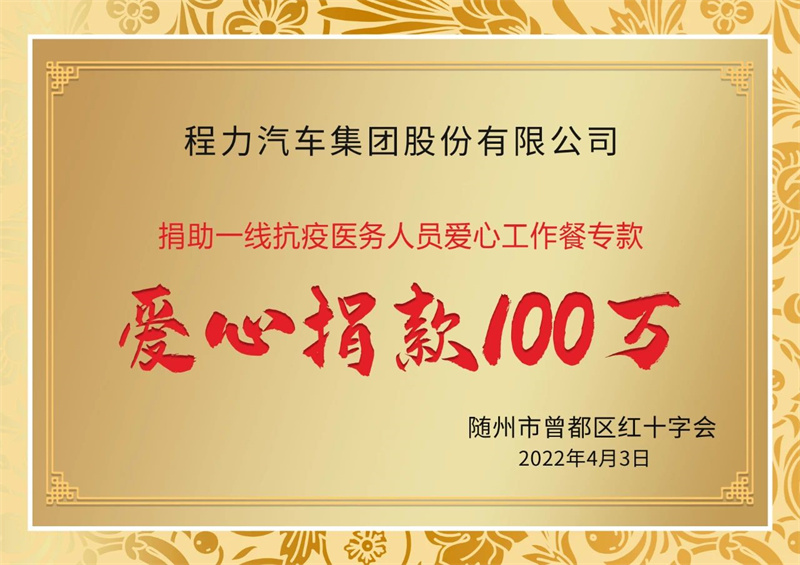 程力汽車集團自2004年創立以來,就踐行社會責任倡導公益事業,在創建世界一流專汽領先企業的過程中,始終如一的把“精準扶貧”、“抗疫抗洪、搶險救災”、“萬企興萬村”,以及扶危濟困、關愛孤寡老人、殘疾兒童,捐款捐物等公益事業作為回報社會的重要途徑先后對宣恩縣巴楚風印務公司、恩施移民社區,以及隨州養老院、殘疾孤兒院、萬店鎮新東村扶貧,隨縣柳林鎮洪災、廣水雙塘村鄉村振興,抗疫捐款捐物、河南鄭州洪災、甘肅積石山地震、河北涿州水災、湖南岳陽潰壩搶險,都給予援助救急解困,累計投入數千萬公益資金。