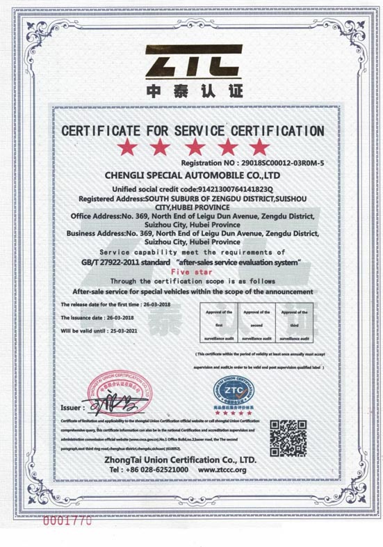 湖北程力公司獲得國(guó)家標(biāo)準(zhǔn)售后服務(wù)五星級(jí)認(rèn)證