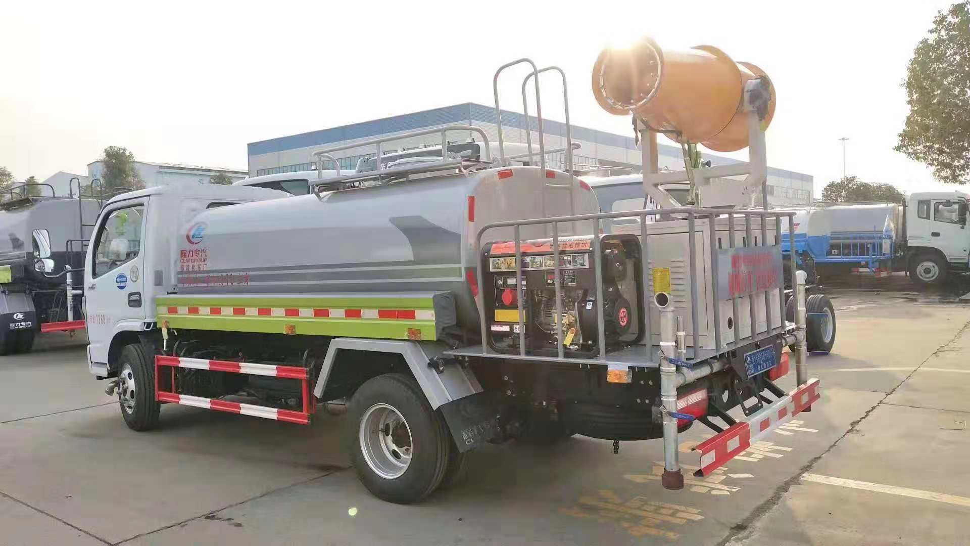 在汽車尾部配兩只側灑噴嘴,主要用于對綠化帶進行噴淋、澆灌、除塵,也可以對綠化隔離帶的人行通道進行噴灑作業。另外添加多功能打藥抑塵噴霧機