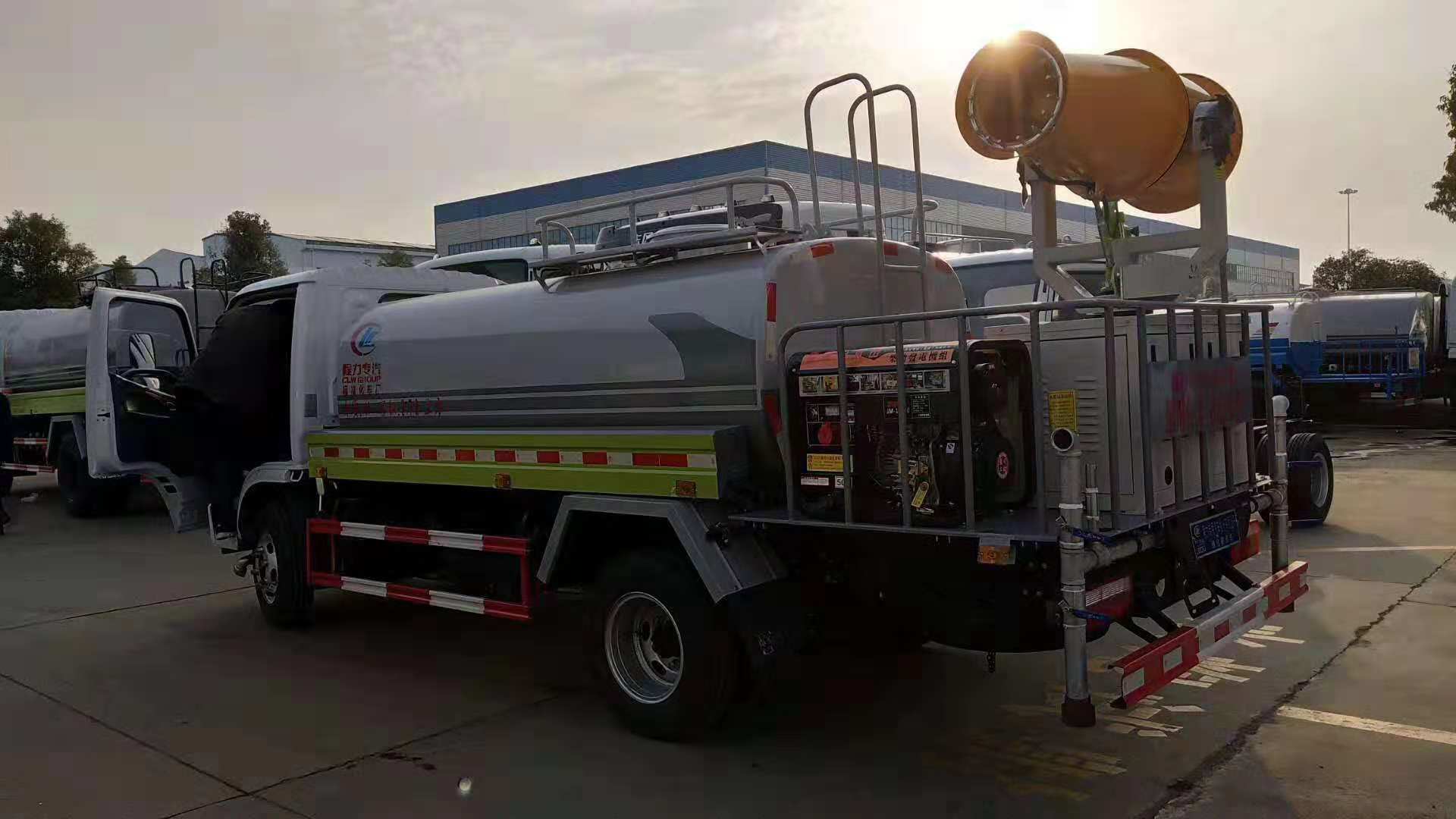 國六新規排放標準,朝柴102馬力,前沖(噴)、后灑、帶側噴(花灑)、帶后工作平臺、平臺上安裝綠化灑水高炮(炮噴射形狀可調節:直沖、大雨、中雨、毛毛雨、霧狀、可連續調節,360°旋轉),配消防接口,自流閥,濾網,帶自吸自排功能。
