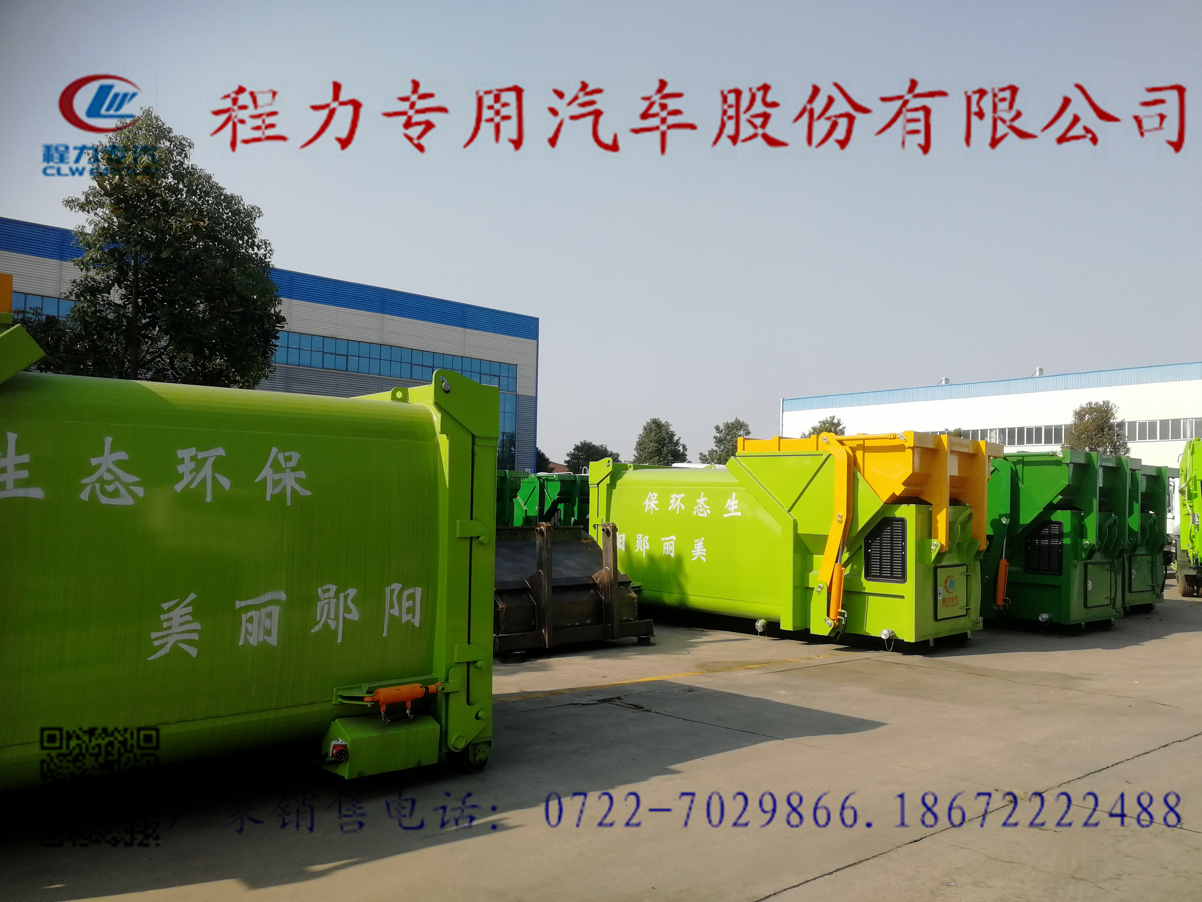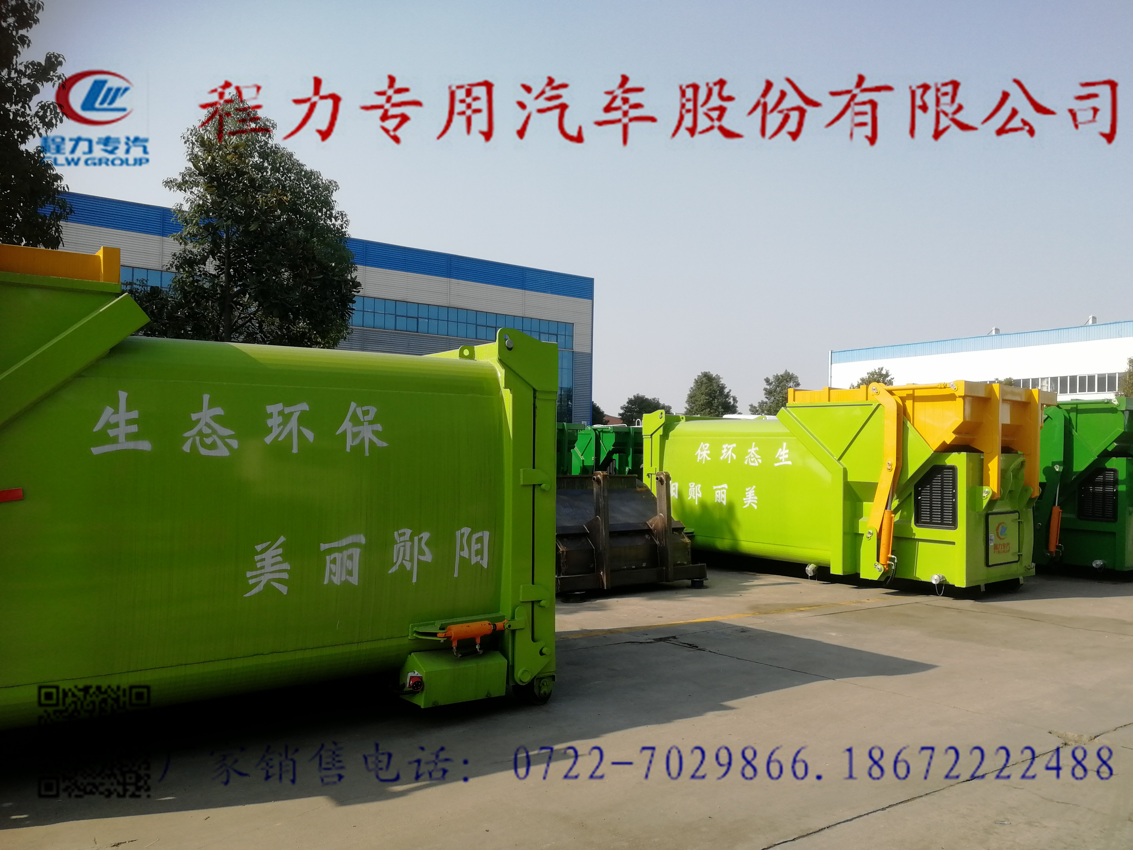 采用功率為5.5Kw的知名品牌專用電機(jī)。保證實(shí)際應(yīng)用的同時降低能耗,為用戶節(jié)約運(yùn)營成本。湖北隨州程力集團(tuán)汽車?yán)湟苿永旧a(chǎn)廠家移動垃圾箱垃圾站6方,8方,10方,12方,14方16方18方等移動壓縮垃圾箱。面是河北冀州政府和湖北十堰政府排量采購湖北程力14-18方移動壓縮垃圾箱,移動垃圾站圖片展示: