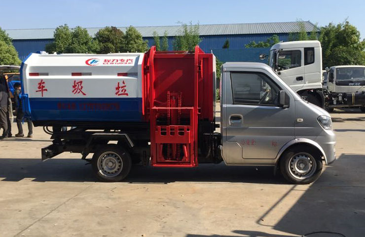 東風(fēng)小康3方掛桶式垃圾車(chē)上裝配置:是全密封式垃圾箱體,垃圾廂容積3立方,采用優(yōu)質(zhì)武鋼產(chǎn)碳鋼板焊接制作而成,邊板彎折強(qiáng)化,箱體右側(cè)配液壓掛桶提升機(jī),可掛國(guó)標(biāo)120升+240升塑料垃圾桶,提升速度快,穩(wěn)定性高,尾門(mén)彈簧鎖扣橡膠密封條,向內(nèi)設(shè)污水欄,箱體雙缸液壓自卸,多路閥手柄操控。