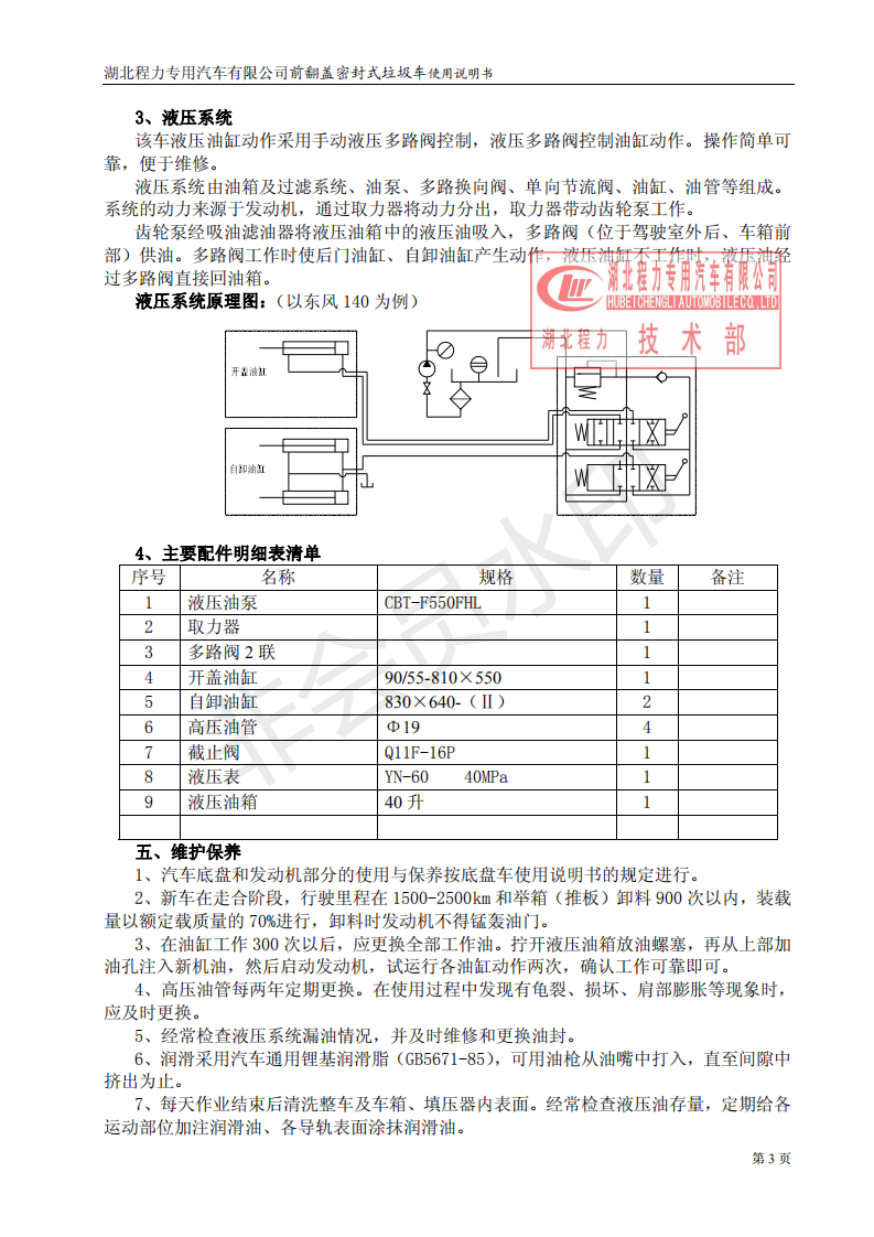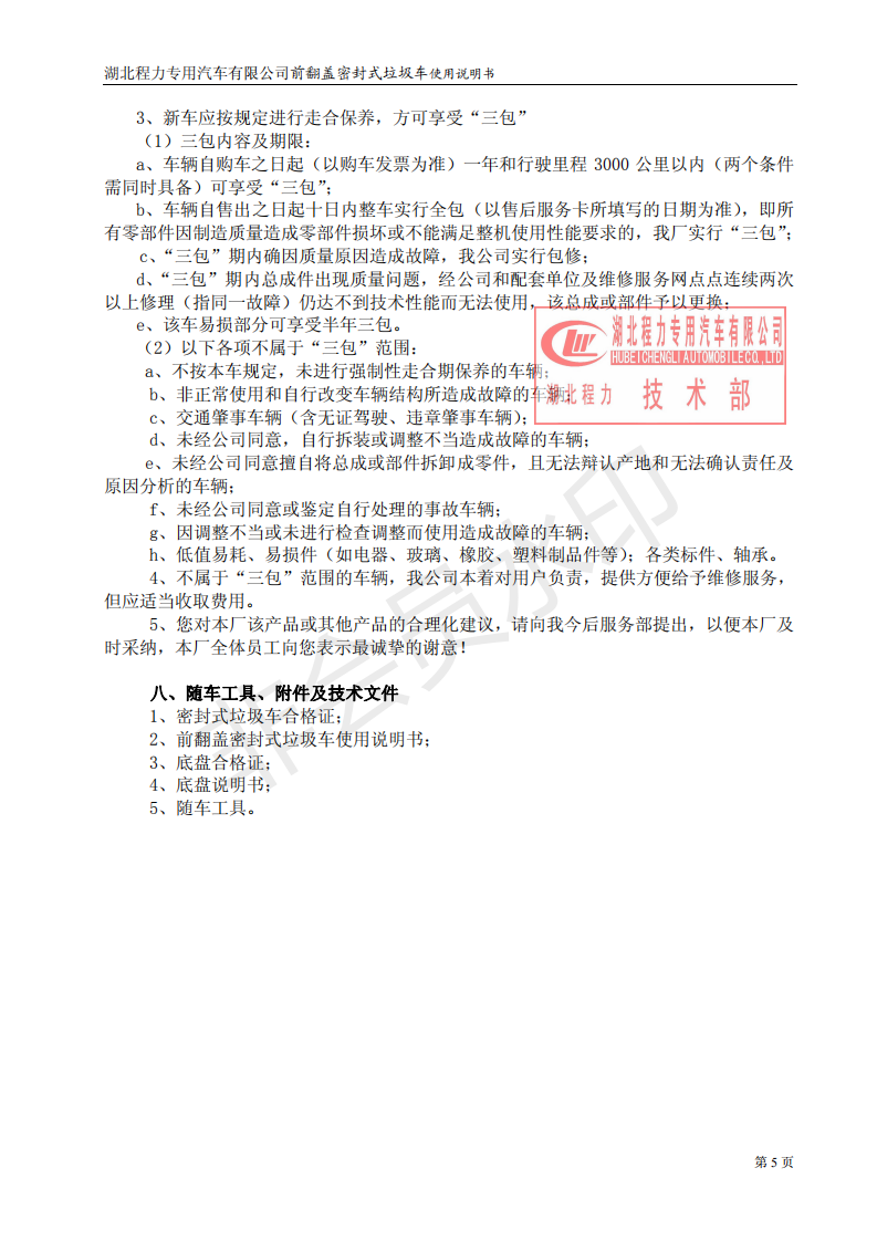 湖北程力密封自卸垃圾車使用維護(hù)說明書(程力自卸垃圾車如何使用