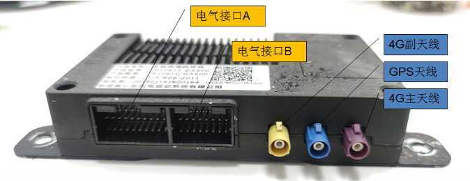 我們先來看看T-BOX的接口,大多數廠家的T-BOX接口有兩部分,一部分是與GPS天線和4G天線連接的“天線接口”,另一部分是與車輛電氣系統連接的“電氣信號接口”。