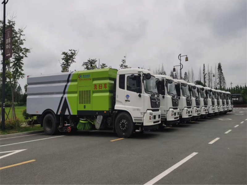 程湖北力集團東風天錦洗掃車批量發車