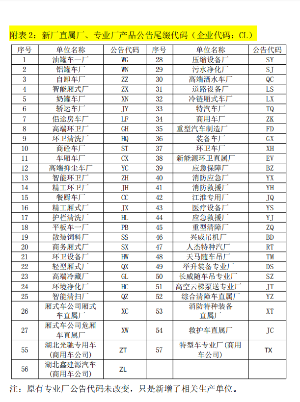 程力重工產(chǎn)品公告尾綴代碼(企業(yè)代碼:CLH),程力集團(tuán)成員廠產(chǎn)品公告尾綴代碼(企業(yè)代碼:CLW)