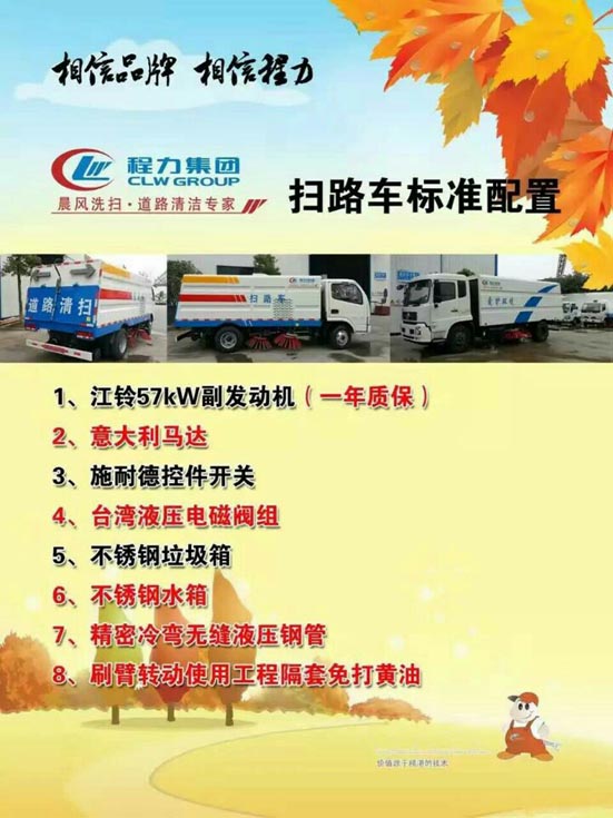 程力掃路車廠家鄭重承諾:凡在我程力公司購買的掃路車,保證副發動機為江鈴或康明斯原廠正品,假一賠十!