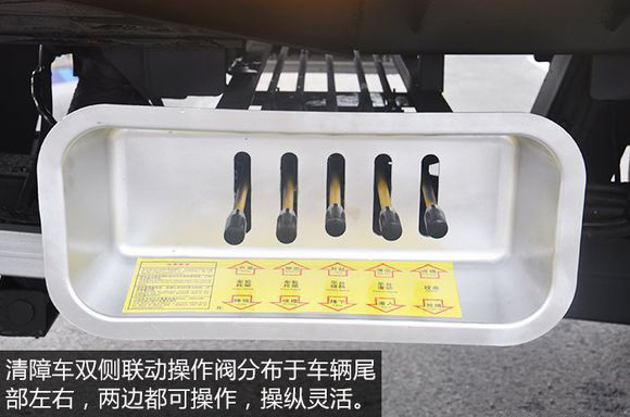 江淮平板一拖二清障車雙側(cè)聯(lián)動(dòng)操作閥分布于車輛尾部左右,兩邊都可操作,操縱靈活,視野范圍廣,減少了后期道路使用中的局限性。