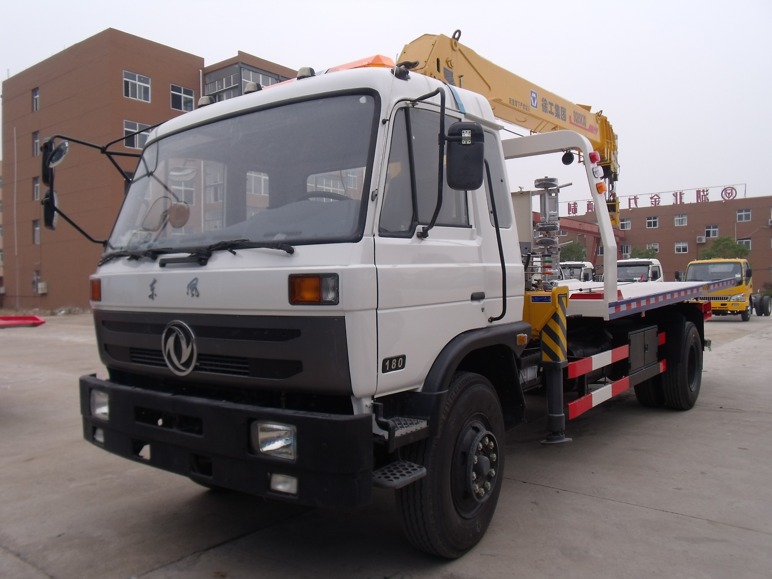 什么是帶吊平板清障車多功能清障車帶吊平板清障車因為是在平板清障車的基礎(chǔ)上加裝上吊機,一般加裝的為徐工吊機,顧名思意這又可以叫平板帶吊清障車、拖吊清障車、帶吊清障車,因為其特性不僅可以一拖二清障車,也可以吊裝故障車輛,也有叫多功能清障車的,這種車型是清障車中的一種類型.也叫一拖二帶吊清障車