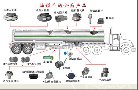 (3)下裝口:下裝口又名卸油閥,安裝于油罐車側(cè)下方,用于快速卸油用,避免了油氣擴散。