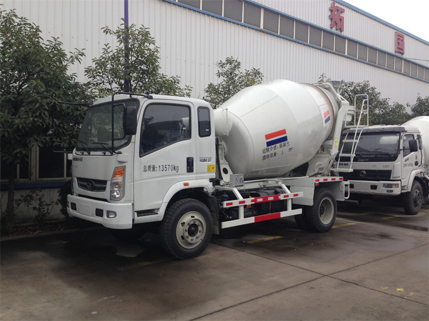 混凝土攪拌車工作原理是:通過取力裝置將汽車底盤的動力取出,并驅動液壓系統的變量泵,把機械能轉化為液壓能傳給定量馬達,馬達再驅動減速機,由減速機驅動攪拌裝置,對混凝土進行攪拌。