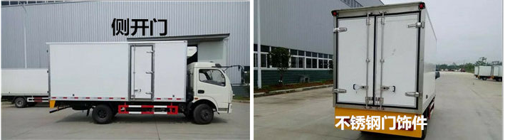 2.上裝配置:冷藏廂體內部有效尺寸:長4.1米×寬1.74米×高1.75米,廂體蒙皮采用內外玻璃鋼,隨客戶選擇內置槽鋼焊接骨架或者玻璃纖維超輕高強度骨架,8cm厚聚氨酯發泡保溫層,不銹鋼包角,不銹鋼門框,不銹鋼門鎖件,花紋鋁底板,配后雙開門,可以選開側門,-5~-18度制冷機組可選。可以安裝肉鉤等內部設施。