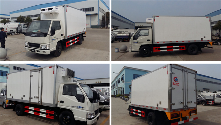 廂體蒙皮內外玻璃鋼,隨客戶選擇內置槽鋼焊接骨架或者玻璃纖維超輕高強度骨架,填充8cm聚氨酯保溫層,不銹鋼包角,不銹鋼門框,不銹鋼門鎖件,防滑花紋鋁底板,配后雙開門,右側選裝單/雙側開門,-5度或者-18度制冷機組可選。選裝美國進口開利或者冷王制冷機組。