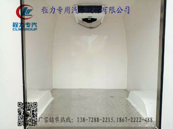 3.上裝配置:冷藏廂體內部有效尺寸:長2.1米×寬1.58米×高1.48米,廂體蒙皮采用內外玻璃鋼,模具一次成型,8cm厚聚氨酯發泡保溫層,不銹鋼包角,不銹鋼門框,不銹鋼門鎖件,花紋鋁底板,配后雙開門,可以選開側門,-5~-18度制冷機組可選。可以安裝溫濕度記錄報警儀,內部通風槽,雙溫制冷機組等藥品冷藏車專用設施。
