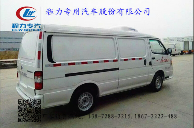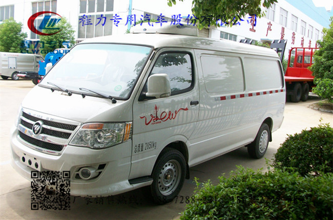 2.上裝配置:冷藏廂內部有效尺寸:長2.86米×寬1.3米×高1.25米,4.5立方,廂體蒙皮內玻璃鋼,外不銹鋼,花紋鋁底板或者玻璃鋼底板,8cm聚氨酯保溫,不銹鋼門鎖件,配后雙開門,-5度或者-18度制冷機組可選。