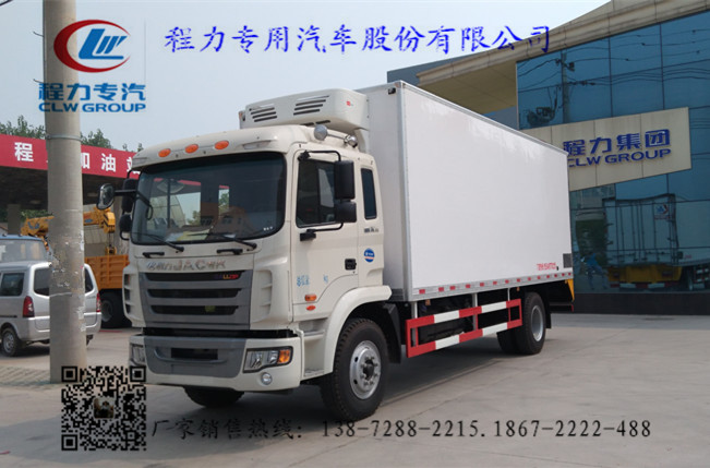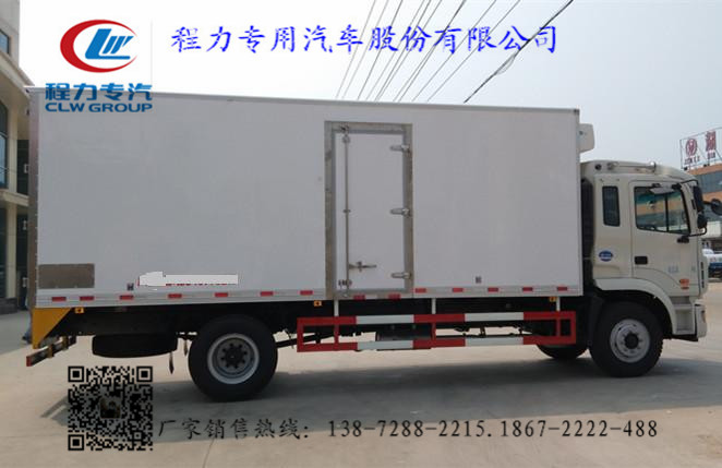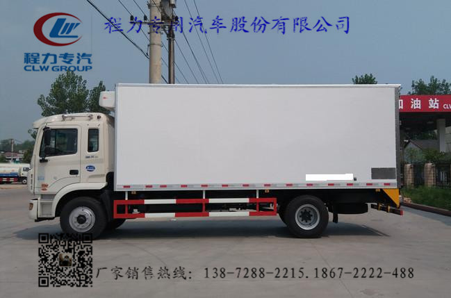 2.上裝配置:冷藏廂體內(nèi)部有效尺寸:長6.23米,6.83米,7.6米(三種)×寬2.35米×高2.43米,廂體蒙皮采用內(nèi)外玻璃鋼,隨客戶選擇內(nèi)置槽鋼焊接骨架或者玻璃纖維超輕高強度骨架,