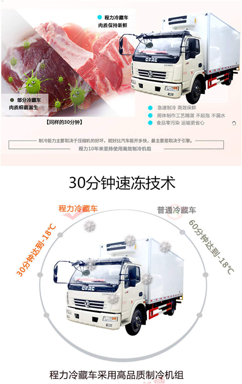 箱體采用三明治結構,內外采用冷藏車專用玻璃鋼(可反射陽光可選用不銹鋼),中間保溫層采用聚氨酯發泡隔熱材料,18米罐注一次成型,產品重量輕,漏熱率(導熱系數)低,強度高,保溫效果好,廂體美觀大方扎實耐用。廂體厚度8CM.廂體全為不銹鋼鎖件,鋁合金包角,廂體可選裝通風槽、開側門等。根據需要可選裝配國內外知名制冷機組(溫度達到保鮮或冷凍要求),可根據您的需求進行定制生產。