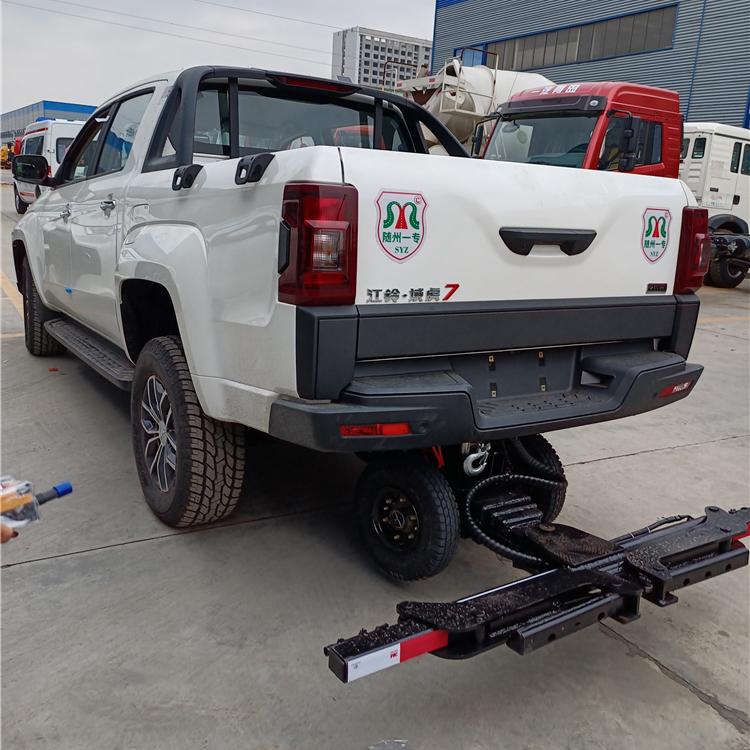 湖北程力國六江鈴域虎7皮卡清障車四驅(qū)皮卡拖車程力牌CL5030TQZ6ZK型清障車廠家配置: 地庫救援皮卡清障車,此款車型有公告,可正常上戶。該車采用江鈴域虎皮卡底盤改裝,全自動夾緊裝置,因?yàn)檐嚿矶獭⒏叨鹊停貏e適合地下車庫的車輛救援。 江鈴域虎7皮卡手動擋皮卡清障車配置:選用國六域虎7皮卡底盤,國六B級排放標(biāo)準(zhǔn)福特發(fā)動機(jī)141馬力,6擋變速箱,中冷增壓柴油發(fā)動機(jī),分時高低速四驅(qū),3085軸距,冷暖空調(diào),真皮座椅,原廠倒車影響,ABS,265,70R16真空越野胎,多功能方向盤,電動玻璃遙控一鍵啟動功能。前后碟剎,鋁合金輪轂,腳踏板2.0T排量,貨箱噴涂。 江鈴域虎7皮卡手動擋皮卡清障車上裝配我廠最新款 第五代專利 產(chǎn)品萬向輔助輪,配無線遙控器真正的全自動抱胎,備用線按鈕,鋼板加強(qiáng),3噸電動液壓單元,雙油缸托3節(jié)伸縮托臂,進(jìn)口部件,進(jìn)口油封,全自動抱胎,贈萬向輔助小車2個,4條綁帶,贈送前配重。 第五代上裝~帶萬向輔助輪后托臂,依據(jù)力學(xué)原理,優(yōu)化設(shè)計(jì),根據(jù)拖車的重量遙控調(diào)節(jié)輔助輪的相應(yīng)高度,車速輕松跑;規(guī)避了已經(jīng)淘汰的第三代國定輔助輪拖臂因不能調(diào)節(jié)摩擦力大速度受限帶來的一系列問題(限速、費(fèi)油、摩擦大引起的爆胎。 湖北程力國六江鈴域虎7皮卡清障車四驅(qū)皮卡拖車程力牌CL5030TQZ6ZK型清障車圖片價格: