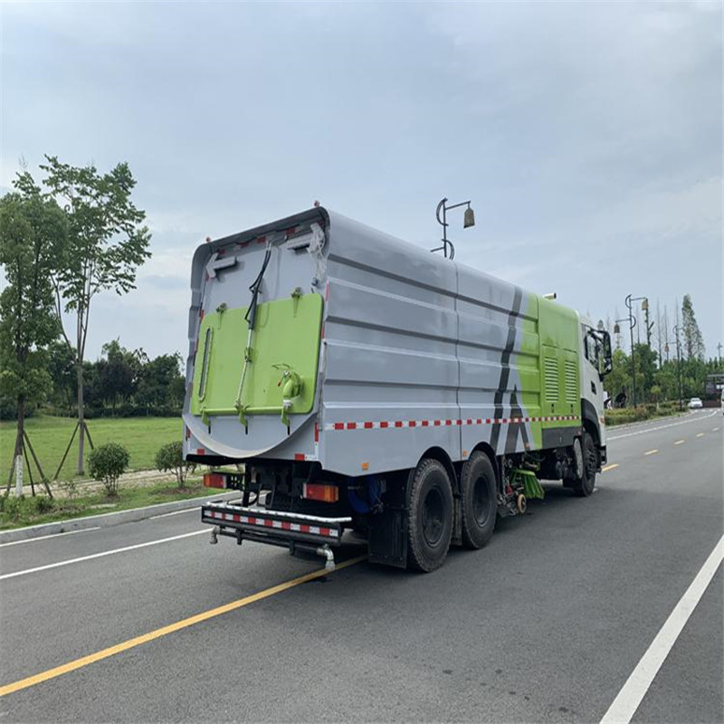 東風天龍大型洗掃車具有路面清洗、路面清掃、路緣清洗、路緣和路緣石立面洗刷、低壓沖洗、噴霧除塵等多功能。有“全洗掃”、 “左洗掃”、 “右洗掃”、 “全掃”、 “左掃”、 “右掃”6種作業模式可選擇。選擇“全洗掃”模式清洗廣場和路面,清洗效率高效果好,洗凈率達90%以上。選擇“左洗掃”或“右洗掃”模式清洗路面和路緣、洗刷路緣石立面。需要進行路面清掃或路面保潔作業時,可選擇掃路模式。需要噴霧除塵時,可開啟噴霧裝置,進行噴霧除塵作業。可以像灑水車一樣對路面進行低壓沖洗作業。