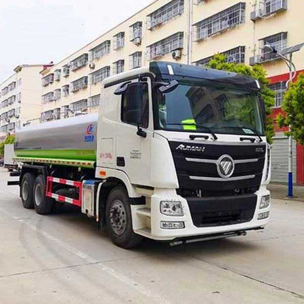 湖北程力國(guó)六福田歐曼GTL后雙橋?yàn)⑺囘x裝配置: 1、可選裝氣動(dòng)球閥開(kāi)關(guān)駕駛室內(nèi)控制; 2、可選裝罐體尾部帶LED箭頭指示燈; 前沖(噴)、后灑、帶側(cè)噴(花灑)、帶后工作平臺(tái)、平臺(tái)上安裝綠化灑水高炮(炮噴射形狀可調(diào)節(jié):直沖、大雨、中雨、毛毛雨、霧狀、可連續(xù)調(diào)節(jié),360°旋轉(zhuǎn)),配消防接口,自流閥,濾網(wǎng),帶自吸自排功能。 湖北程力國(guó)六福田歐曼GTL后雙橋?yàn)⑺囀且豢畈捎脟?guó)六排放標(biāo)準(zhǔn)福田歐曼GTL后雙橋原裝底盤改裝的環(huán)衛(wèi)灑水車,該車配置豪華,駕乘舒適,該車罐體容積:18-20立方米,標(biāo)配前沖、后灑、側(cè)噴、后平臺(tái)高炮,是園林綠化、小區(qū)物業(yè)、公路養(yǎng)護(hù)的常用車型。 湖北程力國(guó)六歐曼后雙橋18-20方綠化噴灑車(灑水車)程力威牌CLW5250GPSBDP型綠化噴灑車圖片價(jià)格:
