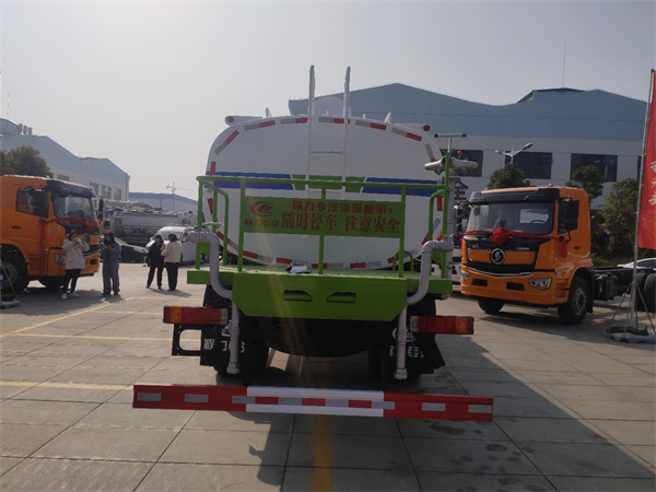 【上裝配置】14.7立方米,罐體4mm厚,封頭4mm,前沖,后灑,側噴,后尾部高炮可調節柱狀雨狀,60-90灑水泵,泵進泵出,帶一個60消防接頭,控制前對沖與左右后灑,兩根罐體等長的吸水管、兩道防浪板、后加大工作平臺