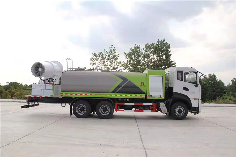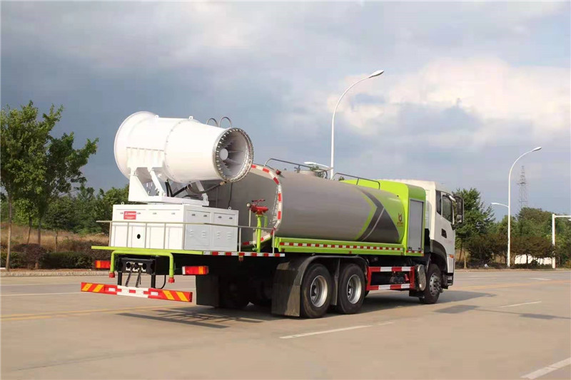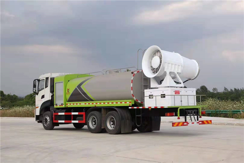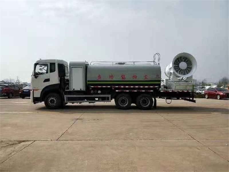 國六東風(fēng)天龍后雙橋多功能抑塵車,采用東風(fēng)天龍后雙橋底盤,配國六康明斯290/300/350馬力發(fā)動機,4350+1350mm軸距,11.00R20鋼絲輪胎,陜齒9檔變速箱,7噸前橋,10噸后橋,助力轉(zhuǎn)向,電動玻璃,斷氣剎,原廠空調(diào),氣囊座椅,ABS,定速巡航,行車記錄儀等。罐體容積16噸,罐體采用外防銹內(nèi)防腐處理,武鋼5mm優(yōu)質(zhì)碳鋼板制成。進水方式可自抽,消防接口,罐頂自流三種方式,標配前沖后灑,側(cè)噴花灑,罐體后工作平臺,平臺上安裝灑水炮和車載噴霧炮,雙炮均可全方位旋轉(zhuǎn),霧化效果可調(diào)節(jié),可選配60--120米噴霧機。