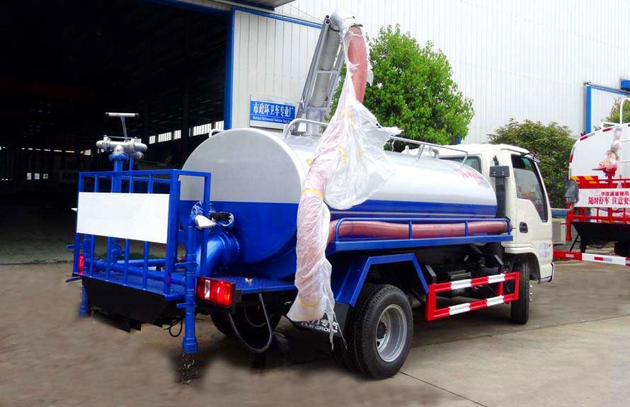 吸糞車罐體可采用:碳鋼、不銹鋼。吸糞車專用部分由取力器、傳動軸、真空吸污泵、高壓成型罐體、油氣分離器、吊桿、放糞閥、吸糞槍,管網系統組成,并裝有真空壓力表、視污窗(管),洗手裝置。公司生產的吸糞車安裝進口防溢流裝置,防止糞便、污水因吸滿倒灌至真空泵系統。吸糞導物管可360度旋轉,排放有加壓排放和自流排放兩種方式。
